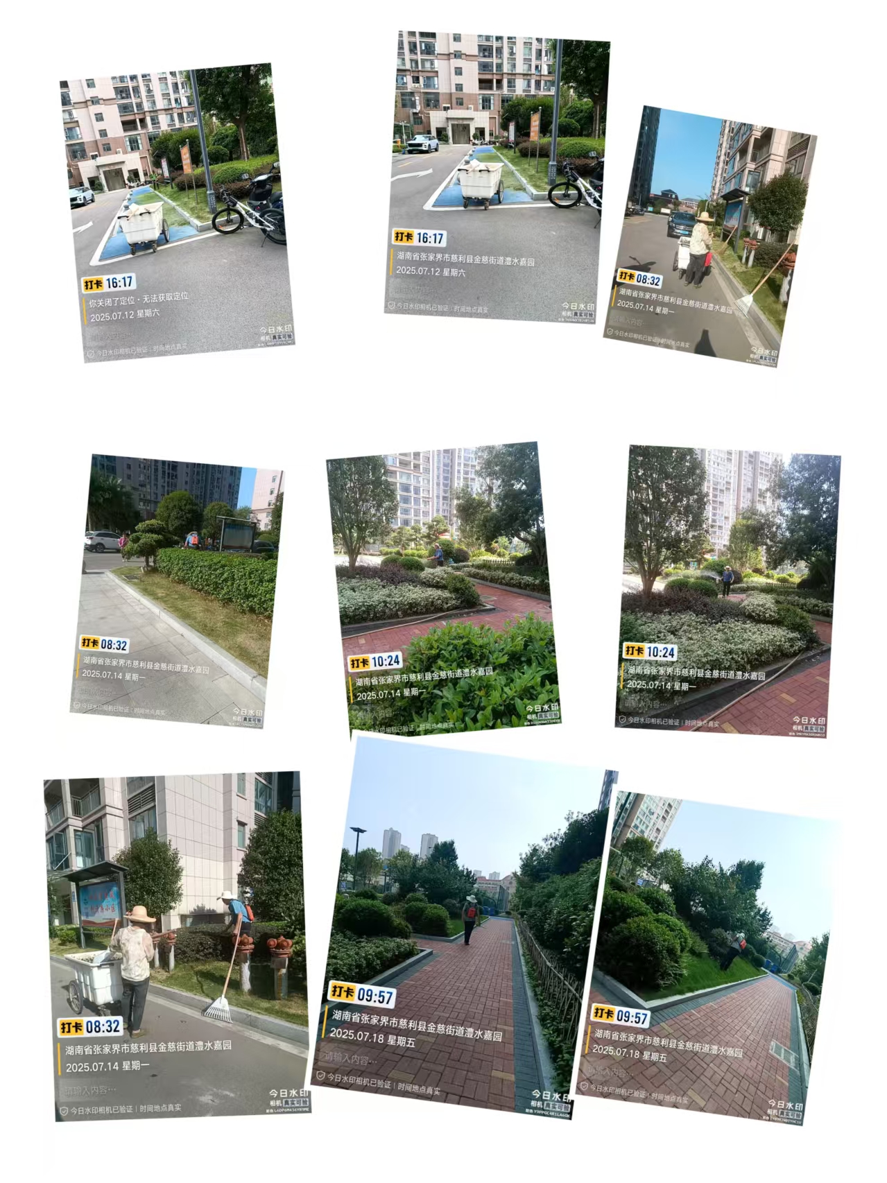 7月,天气比较炎热,蚊虫也比较多,绿化树木花草严重缺水。小区工作人员也在整个小区进行了剪枝、除草、浇灌花草树木。同时也打了草药、蚊虫药。