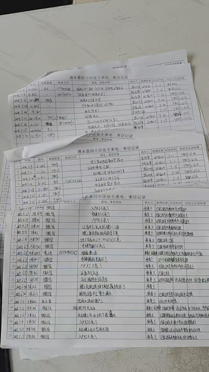六、7月份小区业主的来电来访