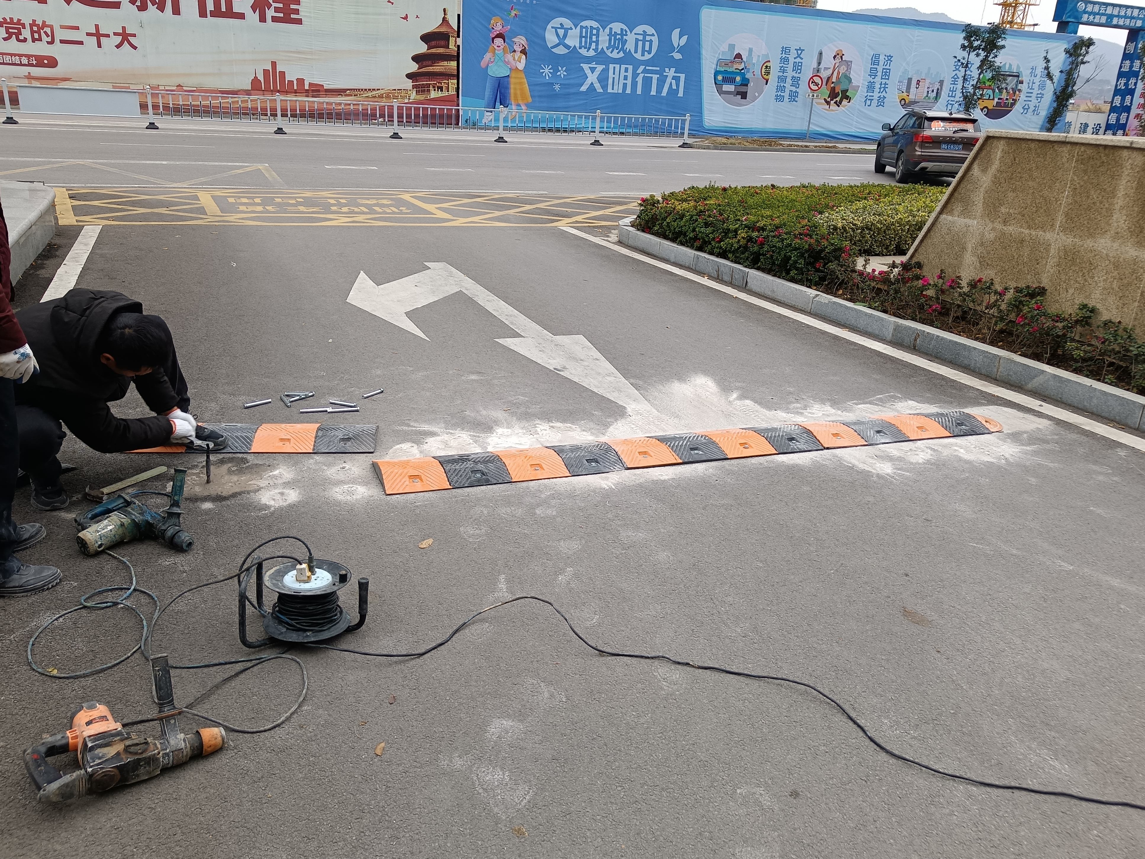四、在小区大门口安装了道路交通减速带,降低车辆行驶速度过快。
