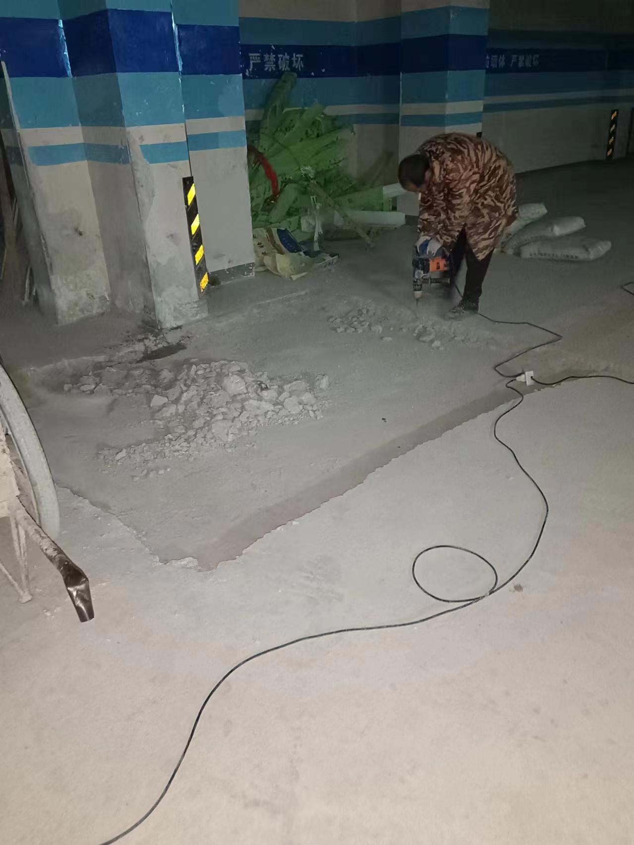 四、物业施工人员在12栋、13栋、20栋地下室进行路面修复。