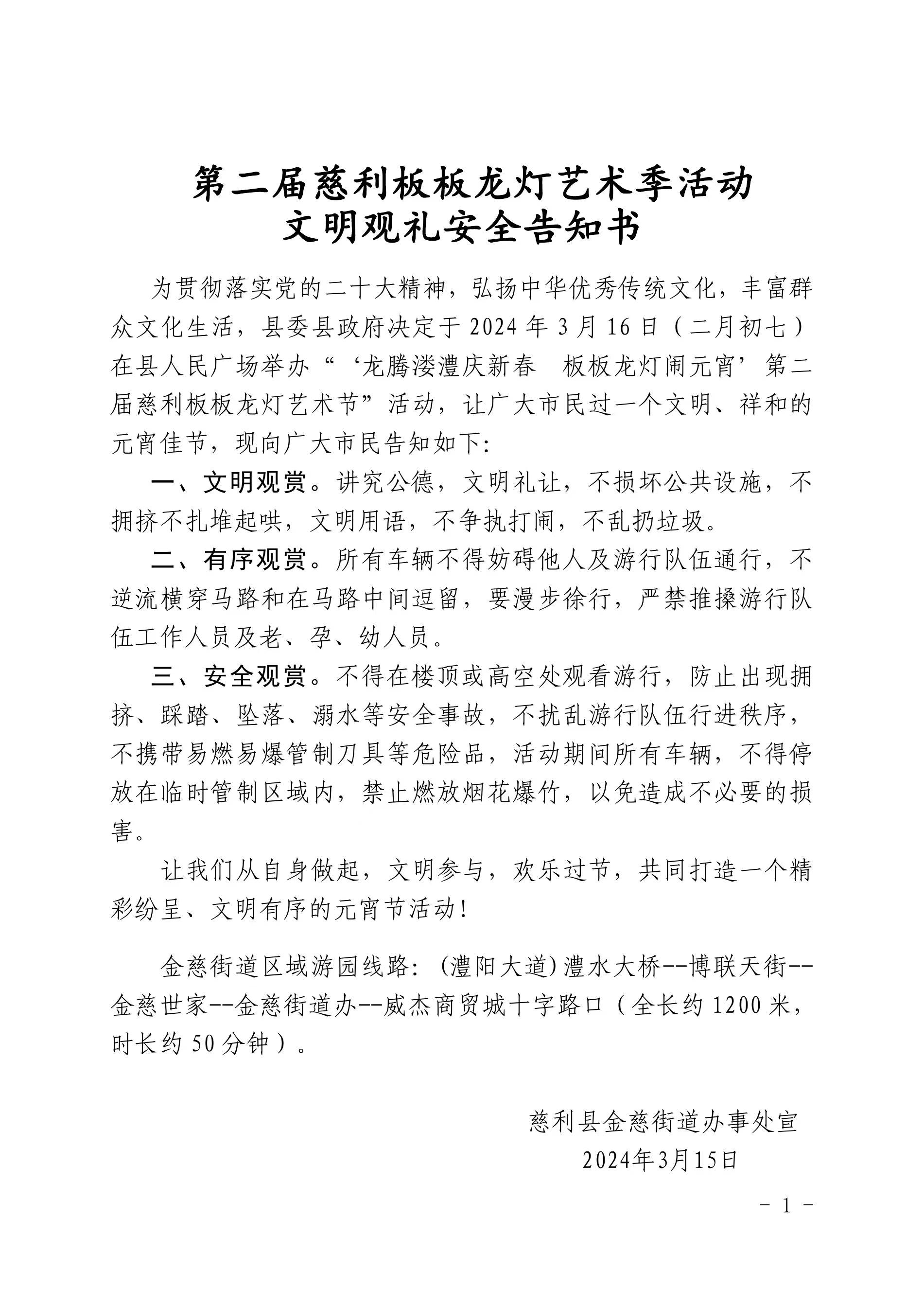 第二届慈利板板龙灯艺术季活动文明观礼安全告知书