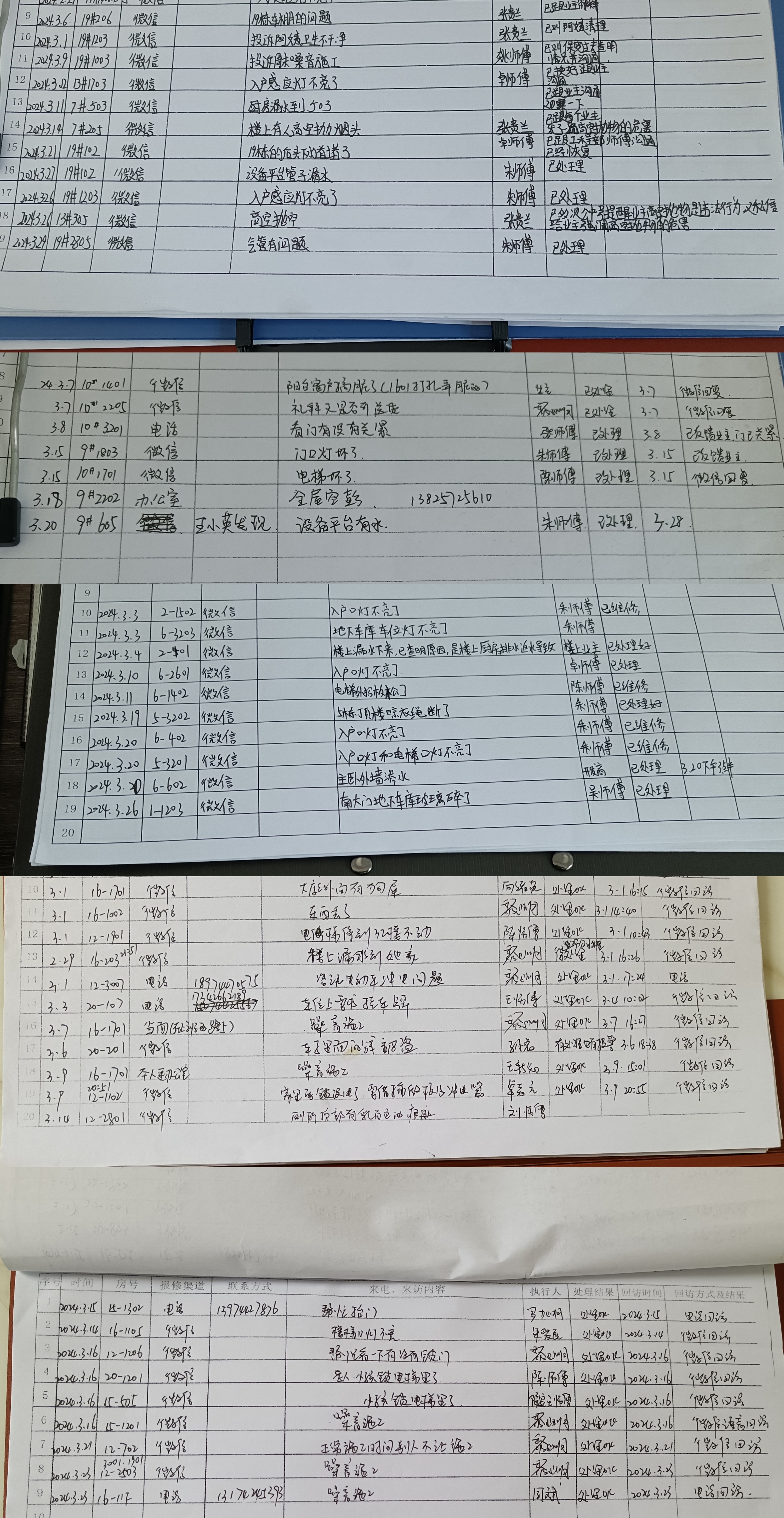 五、小区3月份来电、来访记录。