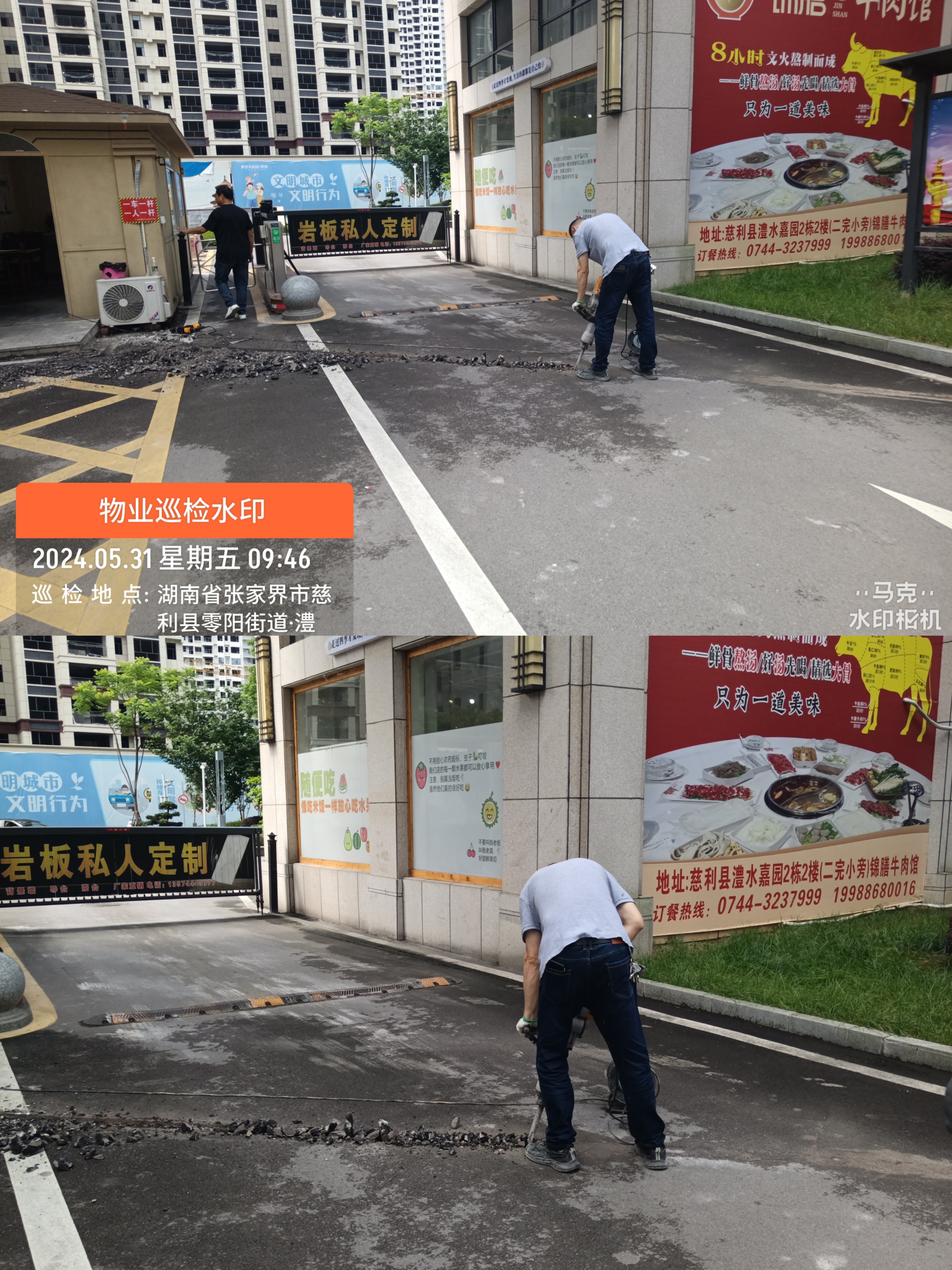 七、因下雨后会导致南大门地面上积水,进出不方便,物业工作人员已对此进行了处理。