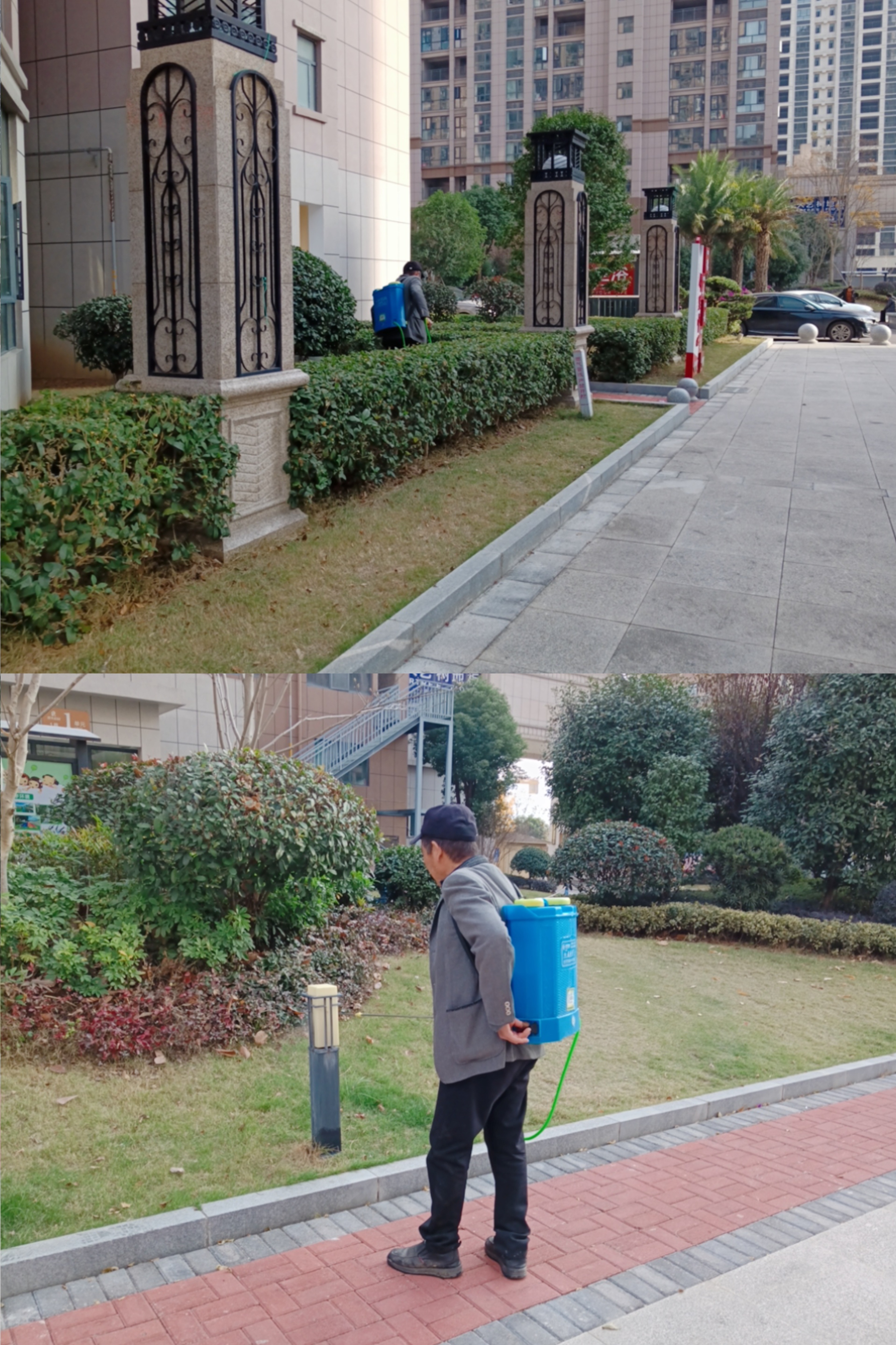 三、因绿化养护防治病虫害的需要,物业工作人员对小区内的草坪、绿化进行了除害工作。