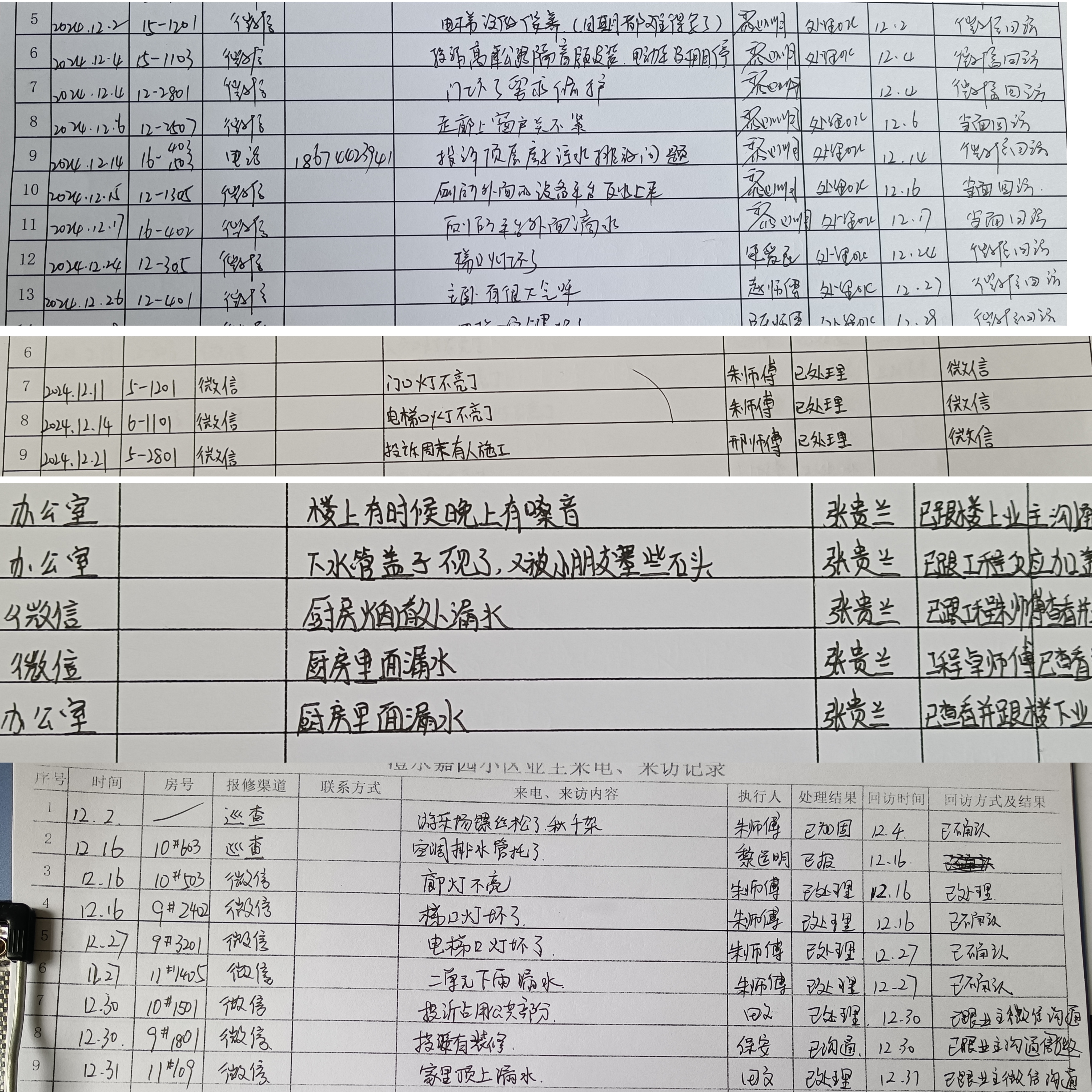 以上是鸿泰物业澧水嘉园管理处2024年12月份物业服务工作汇报,请家人们查收!欢迎您对我们建设美好家园提出宝贵意见与建议。共建干净、文明、和谐、友爱的温馨家园需要每位家人共同来维护,感谢您一直以来为小区生活品质所做的贡献及对物业服务中心工作的支持与理解!