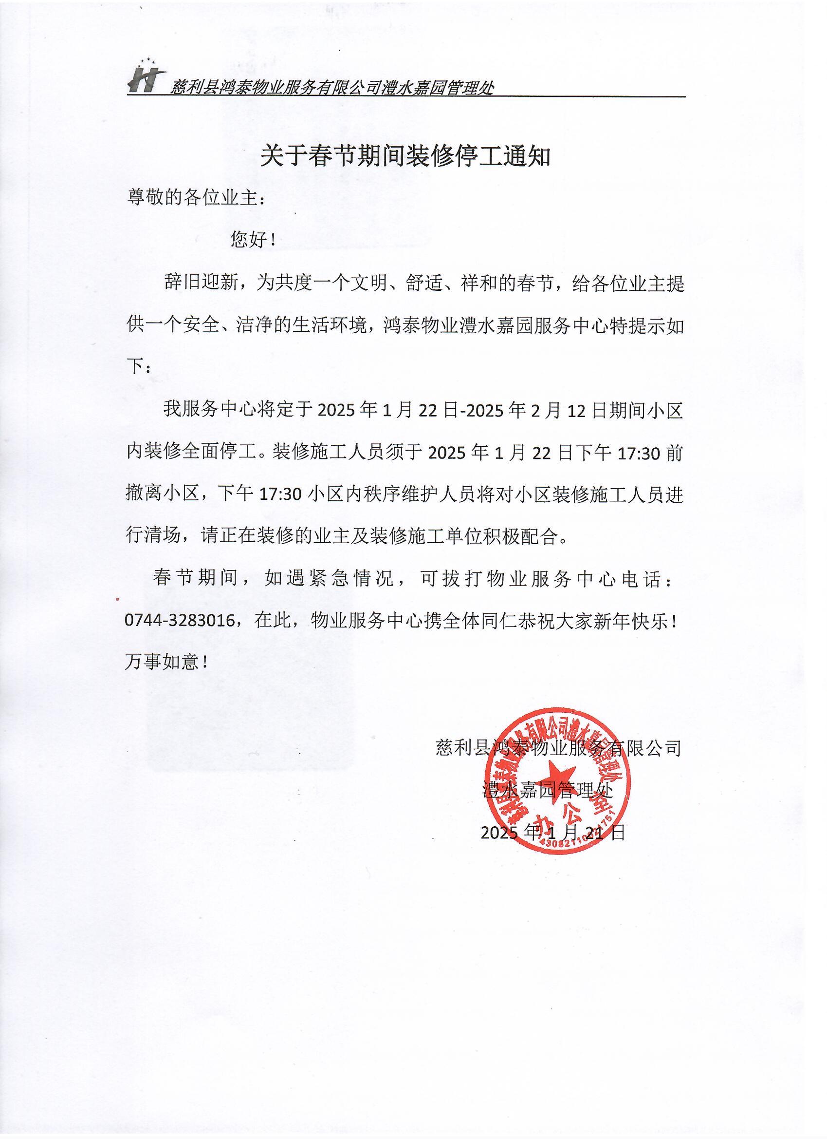 2025年春节期间装修停工通知
