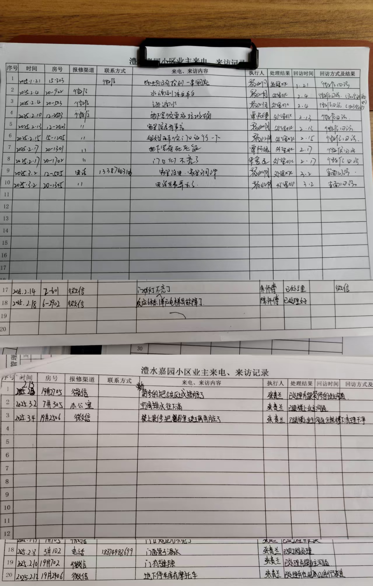 五、小区2月份来电、来访记录。