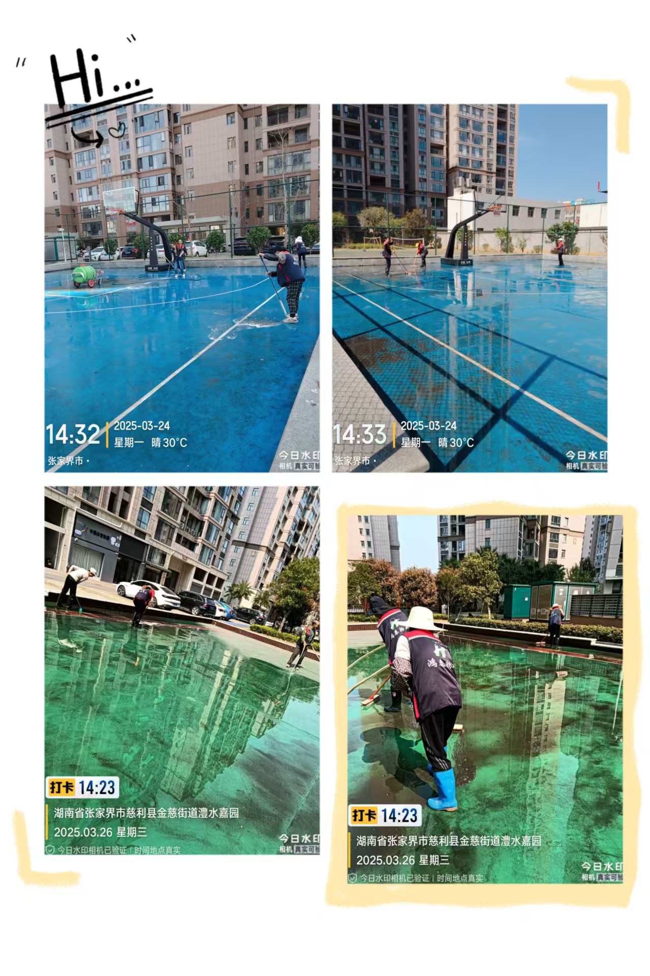五、保洁部人员本月对园区内的篮球场、门球场进行了冲洗、维护。